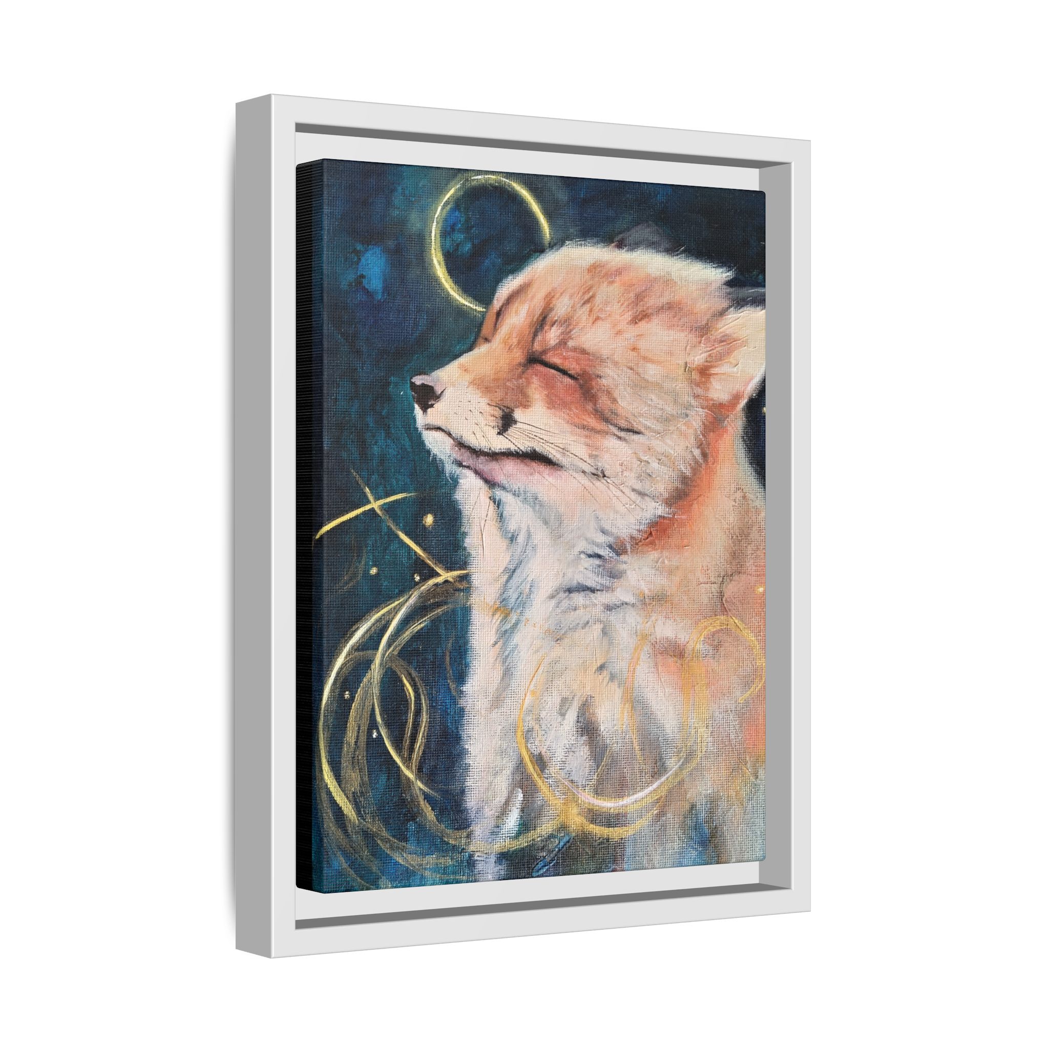 “The Night’s Embrace” invites you into a moment of deep serenity — a space where the world quiets, and you finally allow yourself to simply be. Beneath the gentle shimmer of starlight, the fox rests in perfect surrender, held by the calm rhythm of the warm summer night.